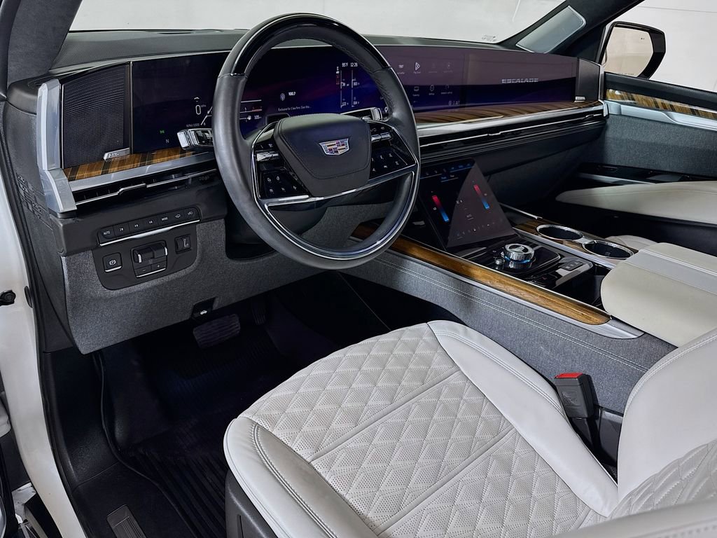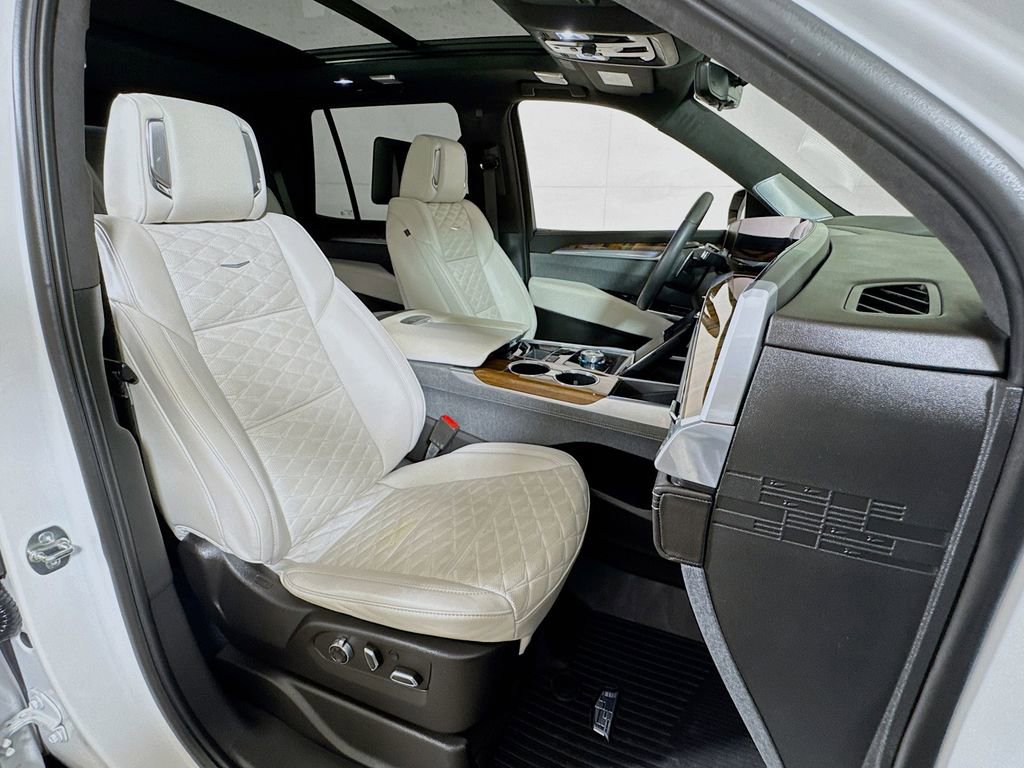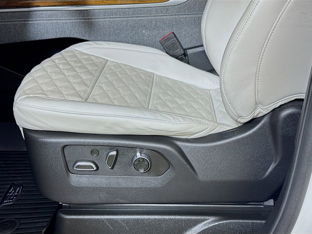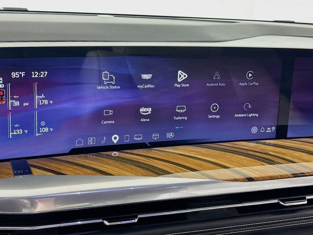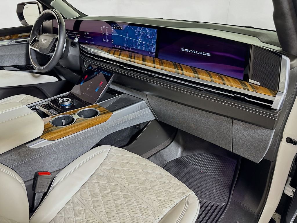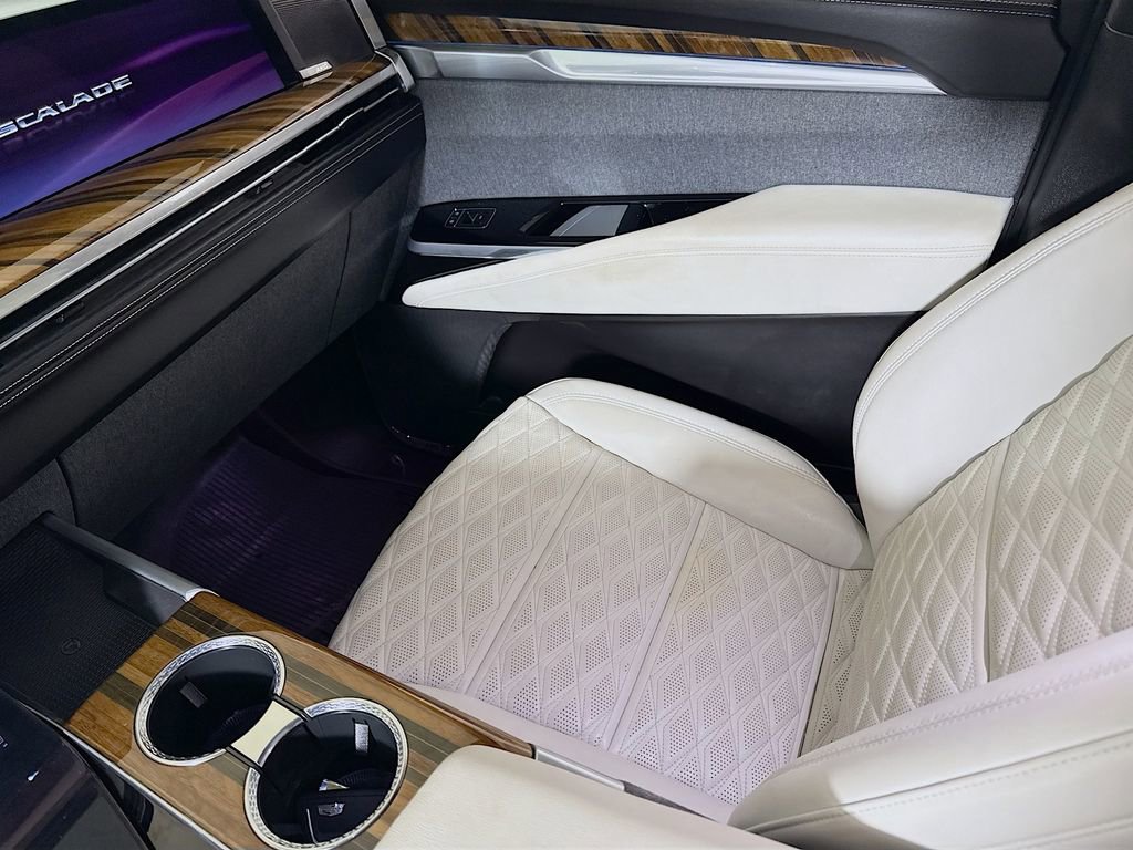Stepping inside, you'll be captivated by the Escalade's unparalleled attention to detail. The full semi-aniline leather seats with mini-chevron pattern offer unmatched comfort and support, while the heated and ventilated front seats and heated rear seats ensure you and your passengers travel in absolute comfort. The Platinum Interior Trim further elevates the cabin's sophistication, with genuine wood accents that seamlessly blend form and function.