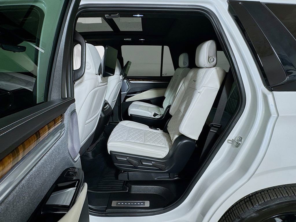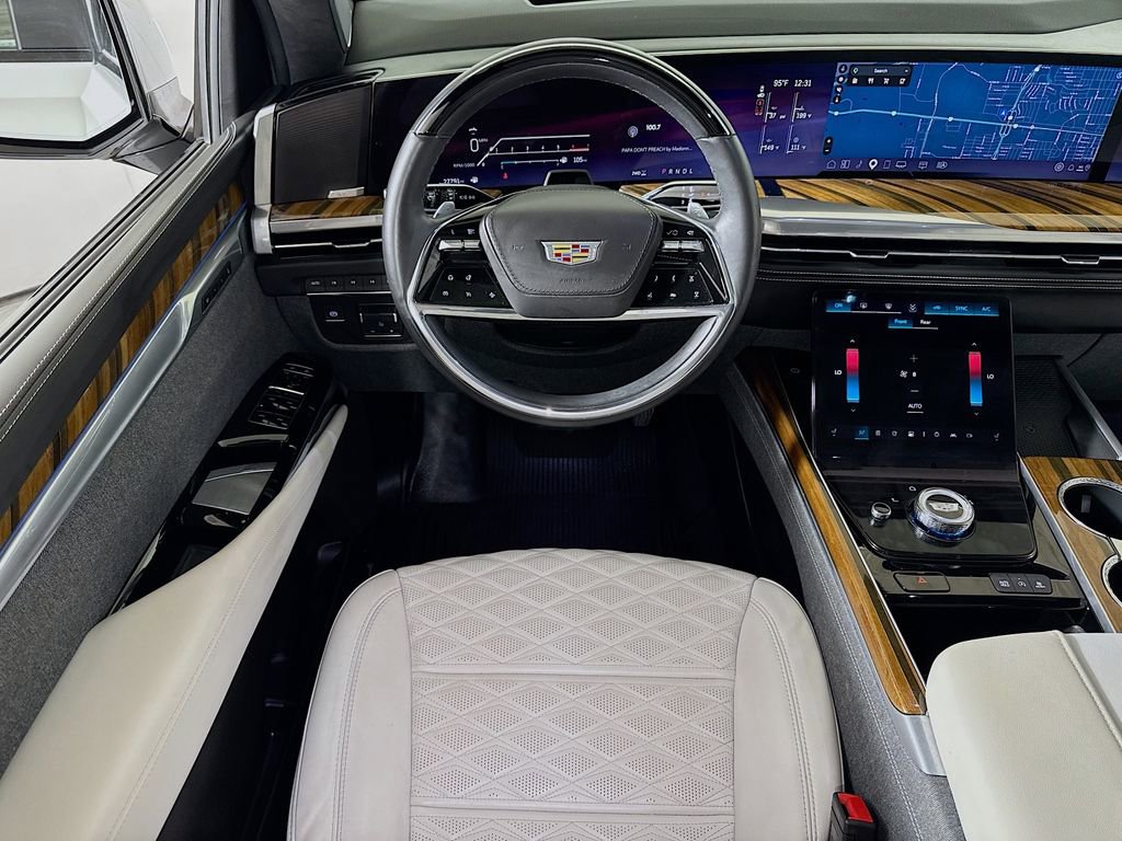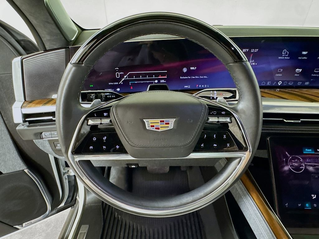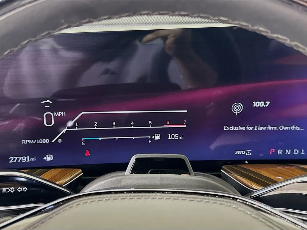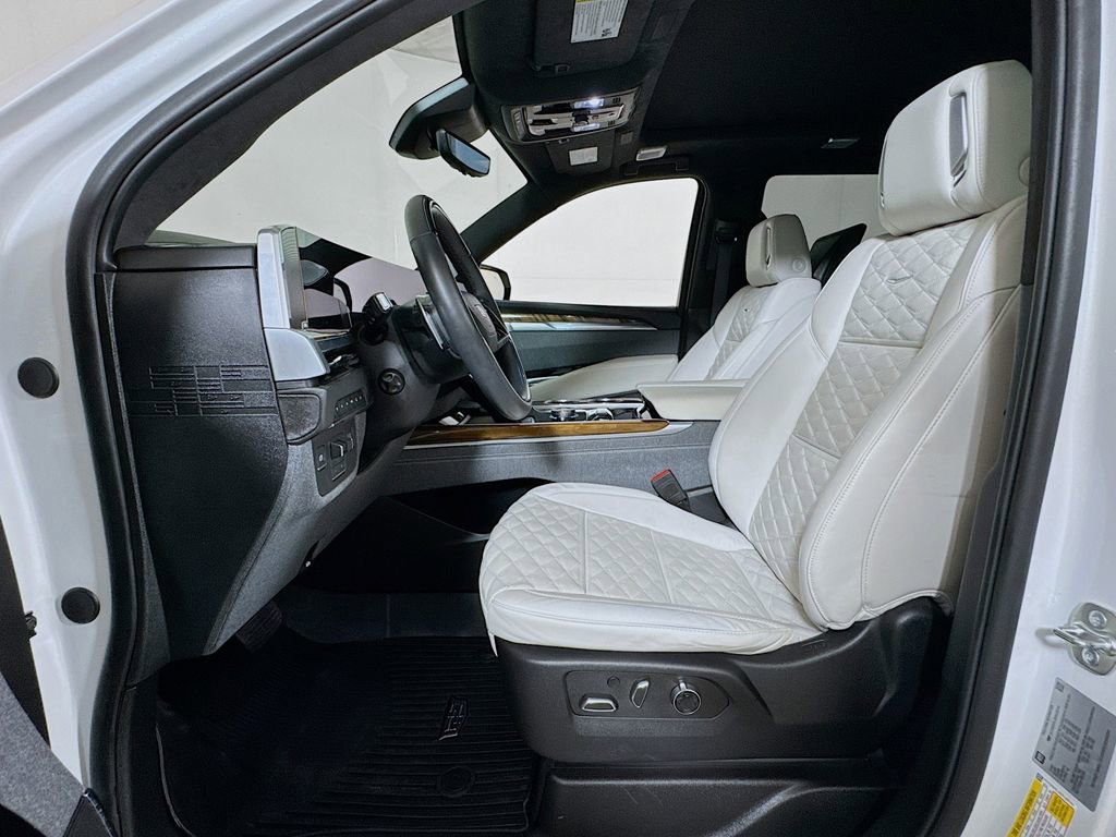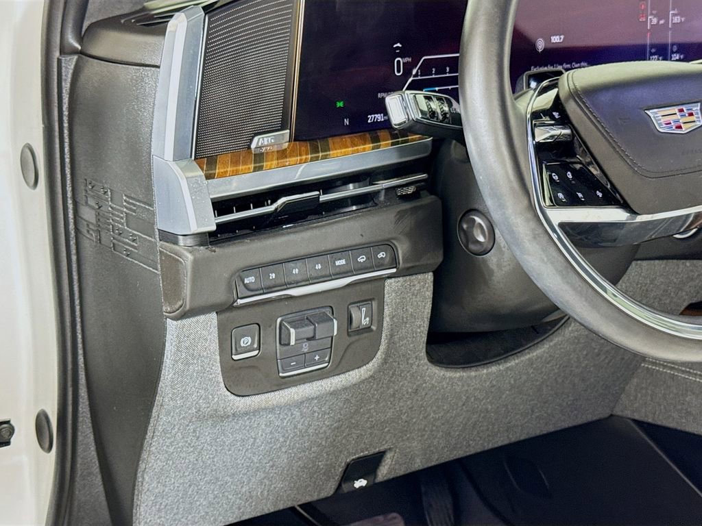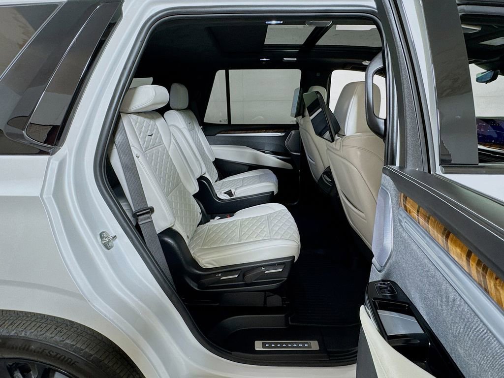 Stepping inside, you'll be captivated by the Escalade's unparalleled attention to detail. The full semi-aniline leather seats with mini-chevron pattern offer unmatched comfort and support, while the heated and ventilated front seats and heated rear seats ensure you and your passengers travel in absolute comfort. The Platinum Interior Trim further elevates the cabin's sophistication, with genuine wood accents that seamlessly blend form and function.