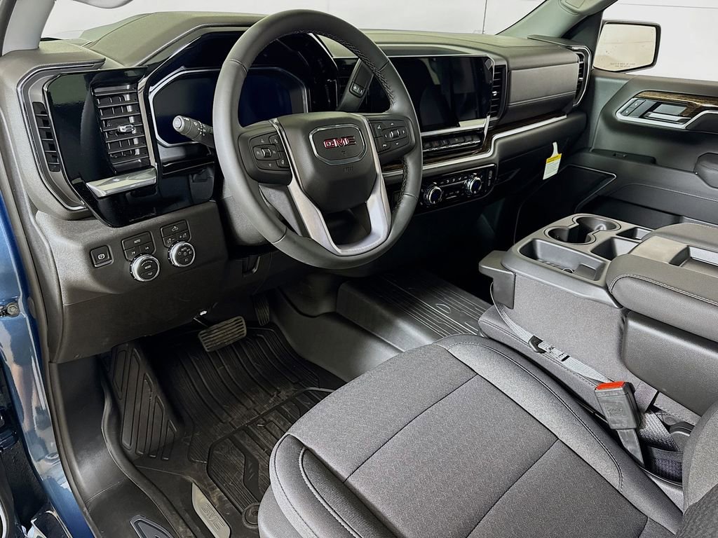 This 2026 GMC Sierra 1500 Elevation New Vehicle Purchase in Downpour Metallic comes with the following features: 8-Speed Automatic, 4WD, Black Cloth, 10-Way Power Driver Seat Adjuster with Lumbar, 120-Volt Bed Mounted Power Outlet, 120-Volt Interior Power Outlet, 2 Charge/Data USB Ports, 2 Type-C Charge-Only Rear USB Ports, 220 Amp Alternator, 3.42 Rear Axle Ratio, 4-Way Manual Passenger Seat Adjuster, 4-Wheel Disc Brakes, 6 Speakers, 6-Speaker Audio System Feature, ABS brakes, Air Conditioning, Alloy wheels, AM/FM radio: SiriusXM with 360L, Apple CarPlay/Android Auto, Auto High-beam Headlights, Auto-Locking Rear Differential, Automatic Emergency Braking, Automatic temperature control, Body Color Header with Gloss Black Mesh Grille Bars, Brake assist, Buckle to Drive, Bumpers: body-color, Cloth Seat Trim, Color-Keyed Carpeting Floor Covering, Compass, Deep-Tinted Glass, Delay-off headlights, Driver door bin, Driver vanity mirror, Dual front impact airbags, Dual front side impact airbags, Electric Rear-Window Defogger, Electronic Stability Control, Emergency communication system: OnStar, Following Distance Indicator, Forward Collision Alert, Front 40/20/40 Split-Bench Seat, Front anti-roll bar, Front Center Armrest w/Storage, Front dual zone A/C, Front fog lights, Front Frame-Mounted Black Recovery Hooks, Front License Plate Kit, Front Pedestrian Braking, Front reading lights, Front Rubberized-Vinyl Floor Mats, Front wheel independent suspension, Fully automatic headlights, HD Rear Vision Camera, Heated door mirrors, Heated Driver and Front Outboard Passenger Seating, Heated front seats, Heated steering wheel, High Capacity Suspension Package, Hitch Guidance, Illuminated entry, Integrated Trailer Brake Controller, IntelliBeam Automatic High Beam on/Off, Keyless Open and Start, Lane Keep Assist with Lane Departure Warning, LED Cargo Area Lighting, Low tire pressure warning, Manual Tilt-Wheel and Telescoping Steering Column, Navigation System, Occupant sensing airbag, OnStar Services Capable, Outside temperature display, Overhead airbag, Overhead console, Panic alarm, Passenger door bin, Passenger vanity mirror, Power Door Locks, Power door mirrors, Power driver seat, Power Front Windows with Driver Express Up/Down, Power Front Windows with Passenger Express Down, Power Rear Windows with Express Down, Power steering, Power windows, Push Button Start, Radio data system, Radio: Premium GMC Infotainment Audio System, Rear reading lights, Rear Rubberized-Vinyl Floor Mats, Rear step bumper, Rear window defroster, Remote keyless entry, Remote Vehicle Starter System, Security system, SiriusXM with 360L Trial Subscription, Speed control, Speed-sensing steering, Split folding rear seat, Steering Wheel Audio Controls, Steering wheel mounted audio controls, Tachometer, Telescoping steering wheel, Theft Deterrent System (unauthorized Entry), Tilt steering wheel, Traction control, Trailering Package, Trip computer, Variably intermittent wipers, Voltmeter, Wheels: : 20 x 9 High Gloss Black Painted Aluminum, Wi-Fi Hotspot Capable, Wireless Apple CarPlay/Wireless Android Auto, 8-Speed Automatic, 4WD, Black Cloth.