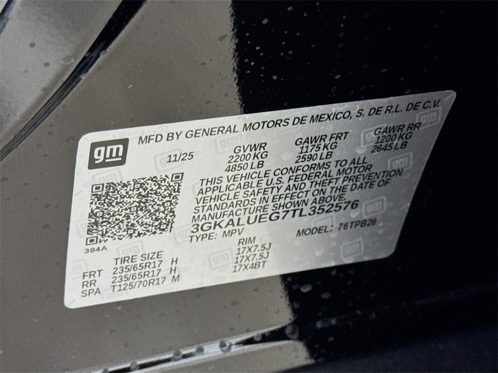 This 2026 GMC Terrain Elevation New Vehicle Purchase in Ebony Twilight Metallic comes with the following features: AWD, 3.47 Final Drive Axle Ratio, 4-Wheel Disc Brakes, 6 Speakers, 6-Speaker Audio System Feature, ABS brakes, Air Conditioning, Alloy wheels, AM/FM radio: SiriusXM, Auto High-beam Headlights, Automatic temperature control, Brake assist, Bumpers: body-color, Compass, Delay-off headlights, Driver 6-Way Manual Seat Adjuster, Driver and Front Passenger Heated Seats, Driver door bin, Driver vanity mirror, Dual front impact airbags, Dual front side impact airbags, Electronic Stability Control, Emergency communication system: OnStar and GMC connected services capable, Four wheel independent suspension, Front anti-roll bar, Front Bucket Seats, Front Center Armrest, Front Passenger 4-Way Manual Seat Adjuster, Front reading lights, Fully automatic headlights, Heated door mirrors, Heated front seats, Heated steering wheel, Illuminated entry, License Plate Front Mounting Package, Low tire pressure warning, Navigation System, Occupant sensing airbag, Outside temperature display, Overhead airbag, Panic alarm, Passenger door bin, Passenger vanity mirror, Power door mirrors, Power steering, Power windows, Preferred Equipment Group 3SB, Premium Cloth Seat Trim, Radio data system, Radio: Premium GMC Infotainment System, Rear air conditioning, Rear anti-roll bar, Rear seat center armrest, Rear window defroster, Rear window wiper, Remote keyless entry, Security system, SiriusXM with 360L Trial Subscription, Speed control, Speed-sensing steering, Split folding rear seat, Spoiler, Sport steering wheel, Steering wheel mounted audio controls, Tachometer, Telescoping steering wheel, Tilt steering wheel, Traction control, Trip computer, Variably intermittent wipers, Wheels: 17 Grazen Metallic Machined Aluminum, Wireless Apple CarPlay/Wireless Android Auto, AWD.