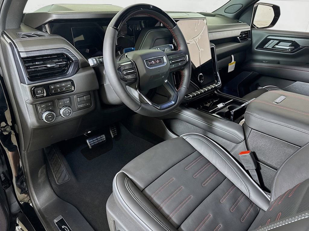 This 2026 GMC Yukon XL AT4 Ultimate New Vehicle Purchase in Onyx Black comes with the following features: 4WD, 15 Diagonal Multi-Color Head-Up Display, 18 Speakers, 3 Years OnStar One, 3.23 Rear Axle Ratio, 3rd row seats: split-bench, 4-Spoke Leather-Wrapped Steering Wheel, 4-Way Power Driver Lumbar Seat Adjuster, 4-Way Power Front Passenger Lumbar Seat Adjuster, 4-Wheel Disc Brakes, 8 Diagonal Rear Touchscreen Climate Control, ABS brakes, Adaptive suspension, Advanced Security Package, Advanced Technology Package, Air Conditioning, Air Ride Adaptive Suspension, Alloy wheels, AM/FM radio: SiriusXM with 360L, Apple CarPlay/Android Auto, AT4 Black Appearance Package, Audio memory, Auto High-beam Headlights, Auto-dimming door mirrors, Auto-dimming Rear-View mirror, Auto-leveling suspension, Automatic temperature control, AutoSense Hands-Free Power Liftgate, Black Nameplates, Black Roof-Mounted Luggage Rack Side Rails, Blind Zone Steering Assist with Trailering, Body-Color Door Handles, Bose 18-Speaker Surround with Centerpoint, Brake assist, Bright Front and Rear Door Sill Plates, Bumpers: body-color, Compass, Delay-off headlights, Driver 2-Way Power Upper Shoulder, Driver Attention Assist, Driver door bin, Driver Power Massage Seat, Driver vanity mirror, Dual Exhaust System, Dual front impact airbags, Dual front side impact airbags, Dual-Pane Panoramic Power Sunroof, Electronic Limited Slip Differential (ELSD), Electronic Stability Control, Emergency communication system: OnStar and GMC connected services capable, Exterior Parking Camera Rear, Extra Capacity Cooling System, Four wheel independent suspension, Front anti-roll bar, Front Bucket Seats, Front Center Armrest, Front dual zone A/C, Front fog lights, Front High-Approach Angle Fascia, Front Passenger 2-Way Power Upper Shoulder, Front Passenger Power Massage Seat, Front reading lights, Full Grain Leather Seats, Fully automatic headlights, Garage door transmitter, Glass Breakage Sensor, Headphones, Heads-Up Display, Heated door mirrors, Heated Driver and Front Passenger Seats, Heated front seats, Heated rear seats, Heated steering wheel, Heavy-Duty Air Filter, Hill Descent Control, Hitch View, Illuminated entry, Illuminated Front Black GMC Emblem, Inside Rearview Auo-Dimming Rear Camera Mirror, Integrated Trailer Brake Controller, Leather steering wheel, License Plate Front Mounting Package, Low tire pressure warning, Magnetic Ride Control Suspension, Max Trailering Package, Memory seat, Navigation system: GMC Connected Navigation, Occupant sensing airbag, Outside temperature display, Overhead airbag, Overhead console, Panic alarm, Passenger door bin, Passenger vanity mirror, Perforated Heated and Ventilated Driver and Front Passenger Seats, Power door mirrors, Power driver seat, Power Liftgate, Power moonroof, Power passenger seat, Power Release 2nd Row Bucket Seats, Power steering, Power Tilt and Telescopic Steering Column, Power windows, Power-Retractable Assist Steps, Preferred Equipment Group 4SG, Premium Capability Package with Active Response 4WD, Radio: 16.8 Diagonal Premium GMC Infotainment System, Rain sensing wipers, Rear air conditioning, Rear anti-roll bar, Rear audio controls, Rear reading lights, Rear Seat Media System, Rear window defroster, Rear window wiper, Red Horizontal-Mounted Recovery Hooks, Remote keyless entry, Security system, SiriusXM with 360L, Smart Trailer Integration Indicator, Speed control, Speed-sensing steering, Split folding rear seat, Spoiler, Sport Pedal Cover Kit, Steering wheel memory, Steering wheel mounted audio controls, Super Cruise, Tachometer, Telescoping steering wheel, Theft-Deterrent Alarm System, Tilt steering wheel, Traction control, Trip computer, Turn signal indicator mirrors, Variably intermittent wipers, Vehicle Inclination Sensor, Vehicle Interior Movement Sensor, Ventilated front seats, Voltmeter, Wheel Locks (set of 4), Wheels: 20 x 9 Machined and Painted, 4WD.