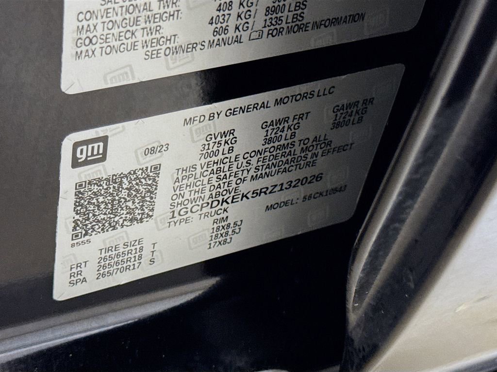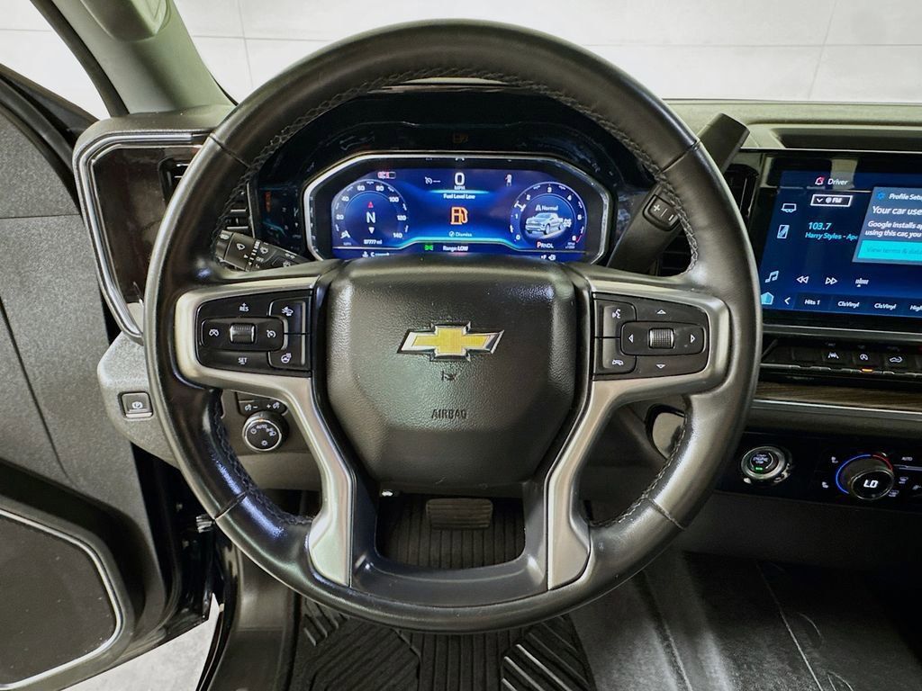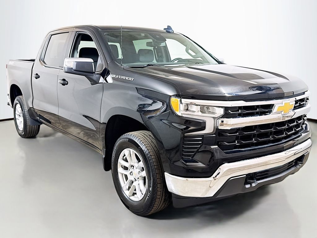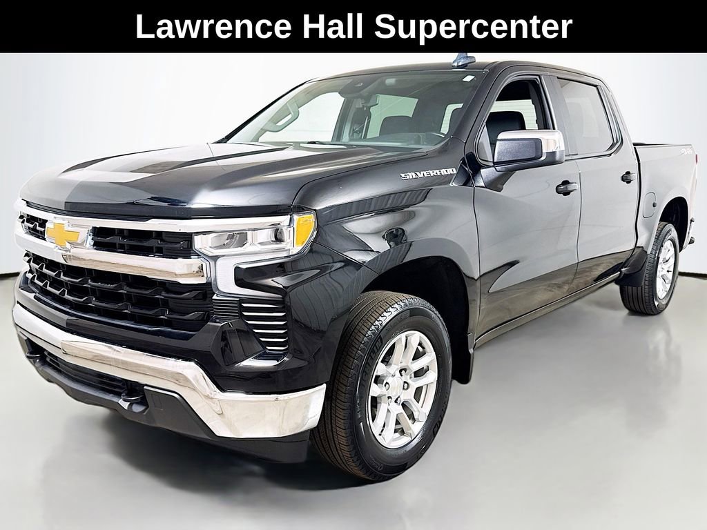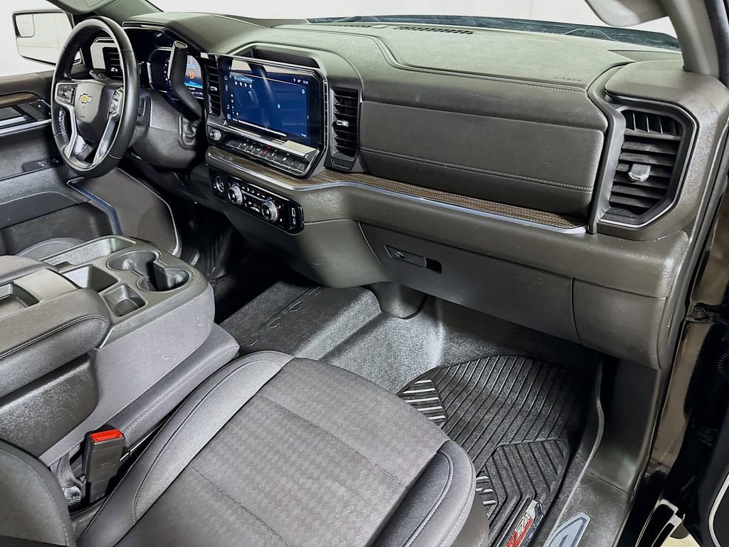 2024 Chevrolet Silverado 1500 LT 8-Speed Automatic, 4WD, Jet Black Cloth, 10-Way Power Driver Seat w/Lumbar, 12.3 Multicolor Reconfigurable Digital Display, 120-Volt Bed Mounted Power Outlet, 120-Volt Interior Power Outlet, 3.42 Rear Axle Ratio, 4-Wheel Disc Brakes, 40/20/40 Front Split-Bench Seat, 6 Speakers, 6-Speaker Audio System, ABS brakes, Air Conditioning, All-Star Edition, Alloy wheels, AM/FM radio: SiriusXM with 360L, Auto High-beam Headlights, Auto-Locking Rear Differential, Automatic Emergency Braking, Automatic temperature control, Bluetooth® For Phone, Brake assist, Bumpers: chrome, Chevrolet Connected Access Capable, Chrome Mirror Caps, Cloth Seat Trim, Color-Keyed Carpeting Floor Covering, Compass, Convenience Package, Deep-Tinted Glass, Delay-off headlights, Driver door bin, Driver vanity mirror, Dual front impact airbags, Dual front side impact airbags, Dual Rear USB Ports (Charge Only), Dual-Zone Automatic Climate Control, Electric Rear-Window Defogger, Electrical Steering Column Lock, Electronic Cruise Control, Electronic Stability Control, Following Distance Indicator, Forward Collision Alert, Front anti-roll bar, Front Center Armrest w/Storage, Front dual zone A/C, Front Frame-Mounted Black Recovery Hooks, Front Pedestrian Braking, Front reading lights, Front wheel independent suspension, Fully automatic headlights, HD Rear Vision Camera, Heated door mirrors, Heated Driver & Front Outboard Passenger Seats, Heated front seats, Heated Steering Wheel, Heated steering wheel, Hitch Guidance, Illuminated entry, IntelliBeam Automatic High Beam On/Off, Keyless Open & Start, Lane Keep Assist w/Lane Departure Warning, LED Cargo Area Lighting, Low tire pressure warning, Occupant sensing airbag, OnStar & Chevrolet Connected Services Capable, Outside temperature display, Overhead airbag, Overhead console, Panic alarm, Passenger door bin, Passenger vanity mirror, Power door mirrors, Power driver seat, Power Front Windows w/Driver Express Up/Down, Power Front Windows w/Passenger Express Down, Power Rear Windows w/Express Down, Power steering, Power windows, Premium audio system: Chevrolet Infotainment 3 Premium, Radio data system, Radio: Chevrolet Infotainment 3 Premium System, Rear 60/40 Folding Bench Seat (Folds Up), Rear reading lights, Rear step bumper, Rear window defroster, Remote keyless entry, Remote Vehicle Starter System, Security system, SiriusXM w/360L, Speed control, Speed-sensing steering, Split folding rear seat, Standard Suspension Package, Steering Wheel Audio Controls, Steering wheel mounted audio controls, Tachometer, Telescoping steering wheel, Theft Deterrent System (Unauthorized Entry), Tilt steering wheel, Traction control, Trailering Package, Trip computer, Variably intermittent wipers, Voltmeter, Wheels: 18 x 8.5 Bright Silver Painted Aluminum, Wi-Fi Hot Spot Capable, Wrapped Steering Wheel, 8-Speed Automatic, 4WD, Jet Black Cloth.