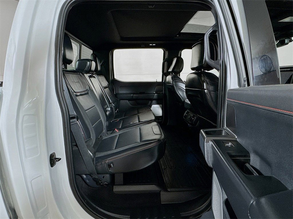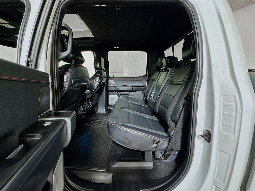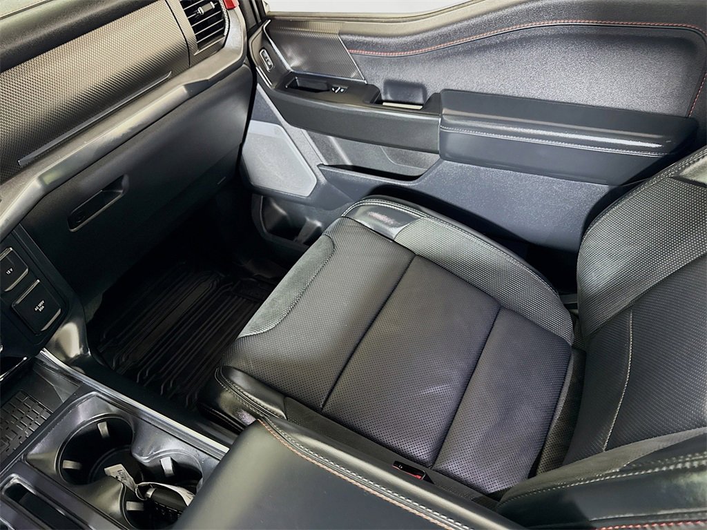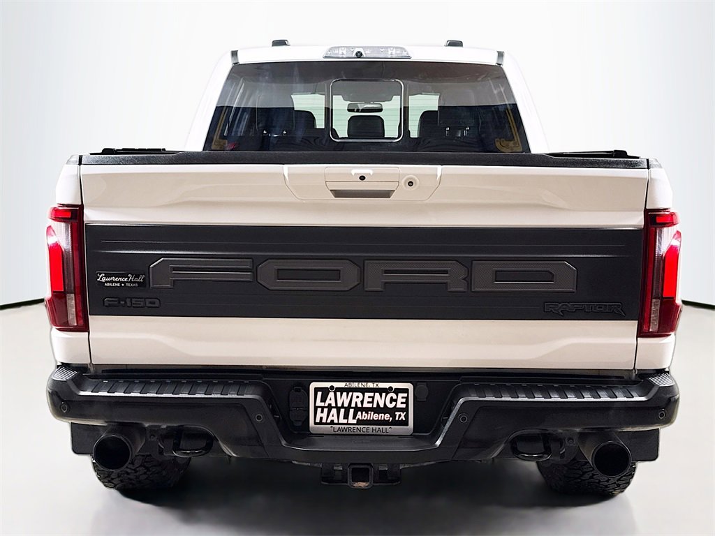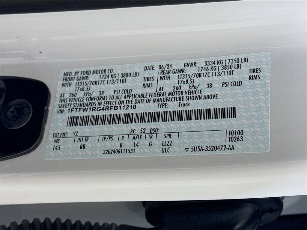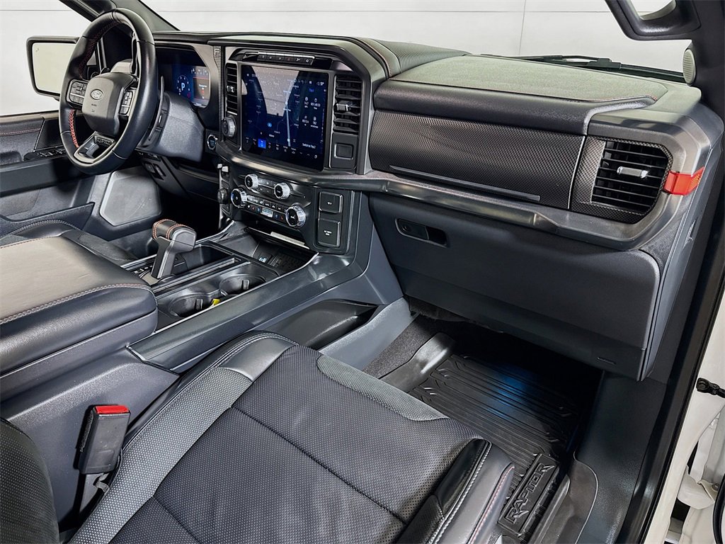 2024 Ford F-150 Raptor 4WD, 14 Speakers, 17 Cast Aluminum Wheels, 4-Wheel Disc Brakes, ABS brakes, Adaptive suspension, Adjustable pedals, Air Conditioning, Alloy wheels, AM/FM radio: SiriusXM with 360L, Auto High-beam Headlights, Auto tilt-away steering wheel, Auto-dimming door mirrors, Auto-dimming Rear-View mirror, Automatic temperature control, Brake assist, Bumpers: body-color, Compass, Delay-off headlights, Driver door bin, Driver vanity mirror, Dual front impact airbags, Dual front side impact airbags, Electronic Locking w/4.10 Axle Ratio, Electronic Stability Control, Emergency communication system: SYNC 4 911 Assist, Engine Block Heater, Equipment Group 801A Standard, Front anti-roll bar, Front Bucket Seats, Front Center Armrest, Front dual zone A/C, Front fog lights, Front reading lights, Front wheel independent suspension, Fully automatic headlights, Garage door transmitter, Heads-Up Display, Heated door mirrors, Heated front seats, Heated rear seats, Heated steering wheel, Illuminated entry, Lane Departure Warning System, Leather Trim Seats, Low tire pressure warning, Memory seat, Navigation system: Connected Navigation, Occupant sensing airbag, Outside temperature display, Overhead airbag, Overhead console, Panic alarm, Passenger door bin, Passenger vanity mirror, Pedal memory, Power door mirrors, Power driver seat, Power passenger seat, Power steering, Power windows, Radio data system, Radio: B&O Unleashed Sound System by Bang & Olufsen, Rain sensing wipers, Rear reading lights, Rear step bumper, Rear window defroster, Remote keyless entry, Security system, Speed control, Speed-sensing steering, Split folding rear seat, Steering wheel memory, Steering wheel mounted audio controls, SYNC 4 w/Enhanced Voice Recognition, Tachometer, Telescoping steering wheel, Tilt steering wheel, Tough Bed Spray-In Bedliner, Traction control, Trip computer, Turn signal indicator mirrors, Twin Panel Moonroof, Variably intermittent wipers, Ventilated front seats, 4WD.