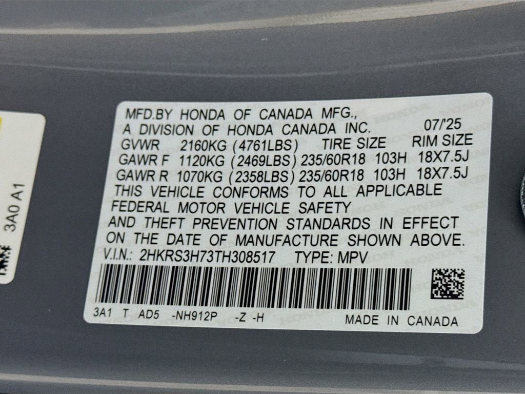 2026 Honda CR-V EX-L 4-Wheel Disc Brakes, 8 Speakers, ABS brakes, Adaptive Cruise Control: Adaptive Cruise Control (ACC) with Low-Speed Follow, Air Conditioning, Alloy wheels, AM/FM radio, Apple CarPlay/Android Auto, Auto High-beam Headlights, Auto-dimming Rear-View mirror, Automatic temperature control, Blind Spot Information (BSI) System warning, Brake assist, Bumpers: body-color, Compass, Delay-off headlights, Driver door bin, Driver vanity mirror, Dual front impact airbags, Dual front side impact airbags, Electronic Stability Control, Exterior Parking Camera Rear, Four wheel independent suspension, Front anti-roll bar, Front Bucket Seats, Front Center Armrest, Front dual zone A/C, Front reading lights, Fully automatic headlights, Heated door mirrors, Heated Front Bucket Seats, Heated front seats, Illuminated entry, Knee airbag, Leather Seat Trim, Leather Shift Knob, Leather steering wheel, Low tire pressure warning, Memory seat, Occupant sensing airbag, Outside temperature display, Overhead airbag, Overhead console, Panic alarm, Passenger door bin, Passenger vanity mirror, Power door mirrors, Power driver seat, Power Liftgate, Power moonroof, Power passenger seat, Power steering, Power windows, Radio data system, Radio: 320-Watt AM/FM Audio System, Rear anti-roll bar, Rear reading lights, Rear seat center armrest, Rear side impact airbag, Rear window defroster, Rear window wiper, Remote keyless entry, Security system, Speed control, Speed-sensing steering, Speed-Sensitive Wipers, Split folding rear seat, Spoiler, Steering wheel mounted audio controls, Tachometer, Telescoping steering wheel, Tilt steering wheel, Traction control, Trip computer, Turn signal indicator mirrors, Variably intermittent wipers, Wheels: 18 Shark Grey.