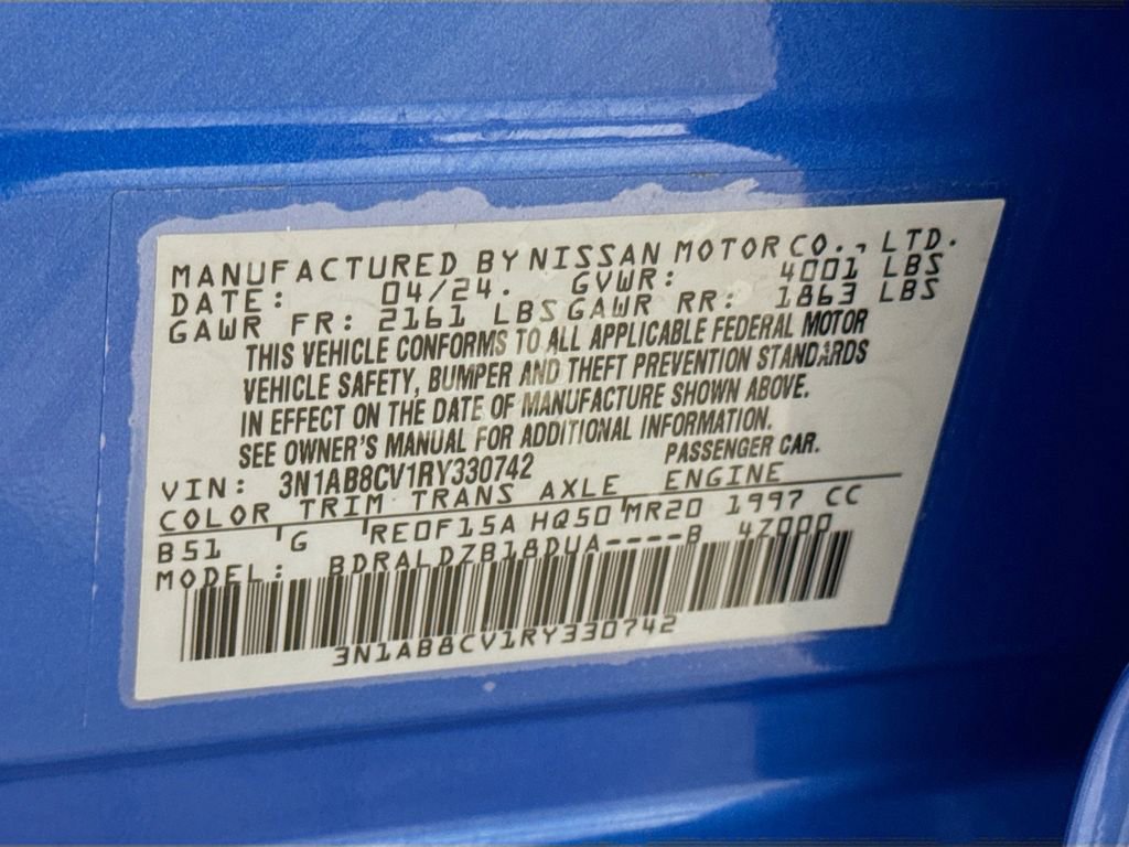 2024 Nissan Sentra SV CVT with Xtronic, Charcoal Cloth, 16 Alloy Wheels, 4-Wheel Disc Brakes, 6 Speakers, ABS brakes, Air Conditioning, Alloy wheels, AM/FM radio: SiriusXM, Auto High-beam Headlights, Blind Spot Warning, Brake assist, Bumpers: body-color, Delay-off headlights, Driver door bin, Driver vanity mirror, Dual front impact airbags, Dual front side impact airbags, Electronic Stability Control, Four wheel independent suspension, Front anti-roll bar, Front Bucket Seats, Front Center Armrest, Front reading lights, Fully automatic headlights, Illuminated entry, Knee airbag, Leather steering wheel, Low tire pressure warning, NissanConnect featuring Apple CarPlay and Android Auto, Occupant sensing airbag, Outside temperature display, Overhead airbag, Overhead console, Panic alarm, Passenger door bin, Passenger vanity mirror, Power door mirrors, Power steering, Power windows, Radio data system, Radio: AM/FM w/RDS/MP3/Aux-In, Rear anti-roll bar, Rear Parking Sensors, Rear side impact airbag, Rear window defroster, Remote keyless entry, Security system, Speed control, Speed-sensing steering, Split folding rear seat, Steering wheel mounted audio controls, Tachometer, Telescoping steering wheel, Tilt steering wheel, Traction control, Trip computer, Upgraded Cloth Seat Trim, Variably intermittent wipers, CVT with Xtronic, Charcoal Cloth.
