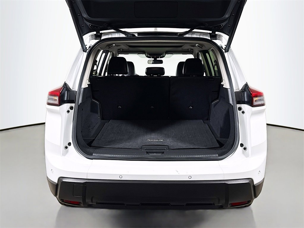 2025 Nissan Rogue SV 4-Wheel Disc Brakes, 6 Speakers, ABS brakes, Air Conditioning, Alloy wheels, AM/FM radio: SiriusXM, Android Auto and Apple CarPlay, Auto High-beam Headlights, Automatic temperature control, Brake assist, Bumpers: body-color, Cloth Seat Trim with Patterned Inserts, Delay-off headlights, Driver door bin, Driver vanity mirror, Dual front impact airbags, Dual front side impact airbags, Electronic Stability Control, Emergency communication system: NissanConnect Services, First Aid Kit, Floor Mats with 1-Piece Cargo Area Protector, Four wheel independent suspension, Front anti-roll bar, Front Bucket Seats, Front Bucket Seats with 8-Way Power Driver Seat, Front Center Armrest, Front dual zone A/C, Front reading lights, Fully automatic headlights, Heated door mirrors, Heated Front Seats, Heated Steering Wheel, Illuminated entry, Knee airbag, Leatherette Door Trim Inserts with Stitch, Low tire pressure warning, Occupant sensing airbag, Outside temperature display, Overhead airbag, Overhead console, Panic alarm, Panoramic Moonroof, Passenger door bin, Passenger vanity mirror, Power door mirrors, Power driver seat, Power Liftgate, Power steering, Power windows, Premium Paint, Prima-Tex Leatherette Seat Trim, Radio data system, Radio: NissanConnect with 6 Speakers, Rear anti-roll bar, Rear Door Sunshades, Rear Personal Lights, Rear seat center armrest, Rear side impact airbag, Rear window defroster, Rear window wiper, Remote keyless entry, Silver Painted Roof Rails, Speed control, Speed-sensing steering, Speed-Sensitive Wipers, Split folding rear seat, Spoiler, Steering wheel mounted audio controls, SV Premium Package, Tachometer, Telescoping steering wheel, Tilt steering wheel, Traction control, Trip computer, Variably intermittent wipers, Wheels: 18 Dark Painted Machine Finished Alloy.
